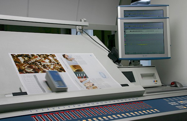 Um eine fehlerfreie und reibungslose Produktion zu gewährleisten wird an allen eingehenden Druckdaten eine technische und optische Prüfung vorgenommen. Unsere CTP-Anlage in Anbindung an einen modernen Workflow ermöglicht uns feinste Rastertechnologien einzusetzen und sorgt für brillante Ergebnisse.